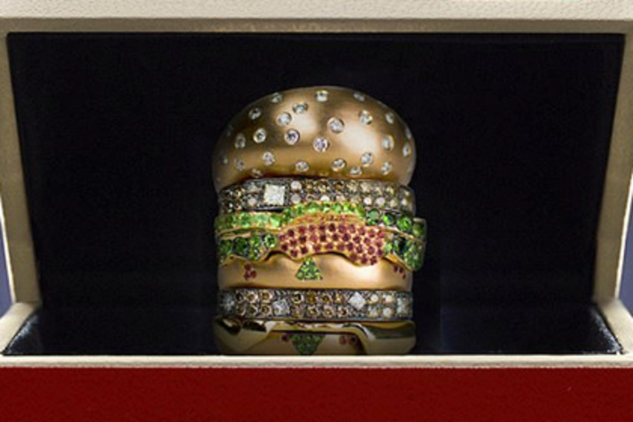 В сети McDonalds ко Дню свято Валентина выпустили золотое кольцо, усыпанное бриллиантами и сапфирами. Украшение стилизовано под гамбургер, сообщает Лента. Ru....