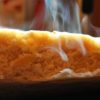 внешний вид — ломтик хлеба полностью покрыт майонезом, растертым с яйцами, посыпан сыром и запечен,