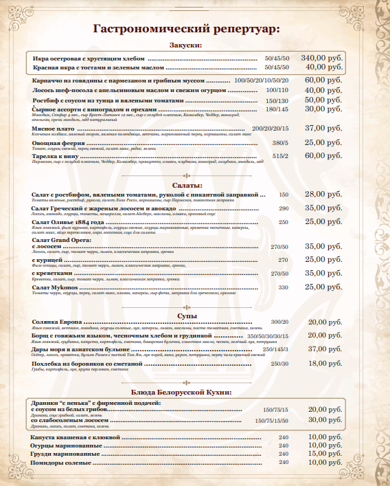 Эксперты cook.kz cпешат поделиться впечатлениями от посещения минского ресторана «1884 D’Europe», который расположен в отеле Европа. Посредством рекламы в соцсетях, ресторан приглашает к себе на обед гостей, которые не проживают в отеле и ценят вкусную еду и интересный интерьер. Словом, тех, кто в погоне за гастрономическими эффектами готов проехать пару лишних остановок в метро.